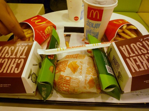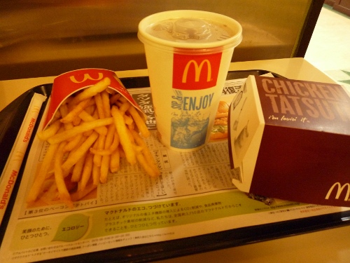 プレートに敷いてある紙に「チキンタツタは青春の味でした!」っていうコメントが。僕の青春時代(なんてあったか知りませんが)あまりチキンタツタは食べていなかったなぁ~60円(65円?)ハンバーガー時代は僕が中学の頃です。懐かしい。